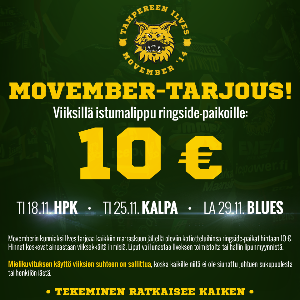Kausi on edennyt vasta marraskuulle ja Ilveksellä on jo kaikki keinot käytössä (alennuksia vähän sinne ja tänne, ilmaispeli yms.), jotta 4815 katsojan keskiarvo saadaan nostettua ylemmäs. No, ainakaan ei nukuta.